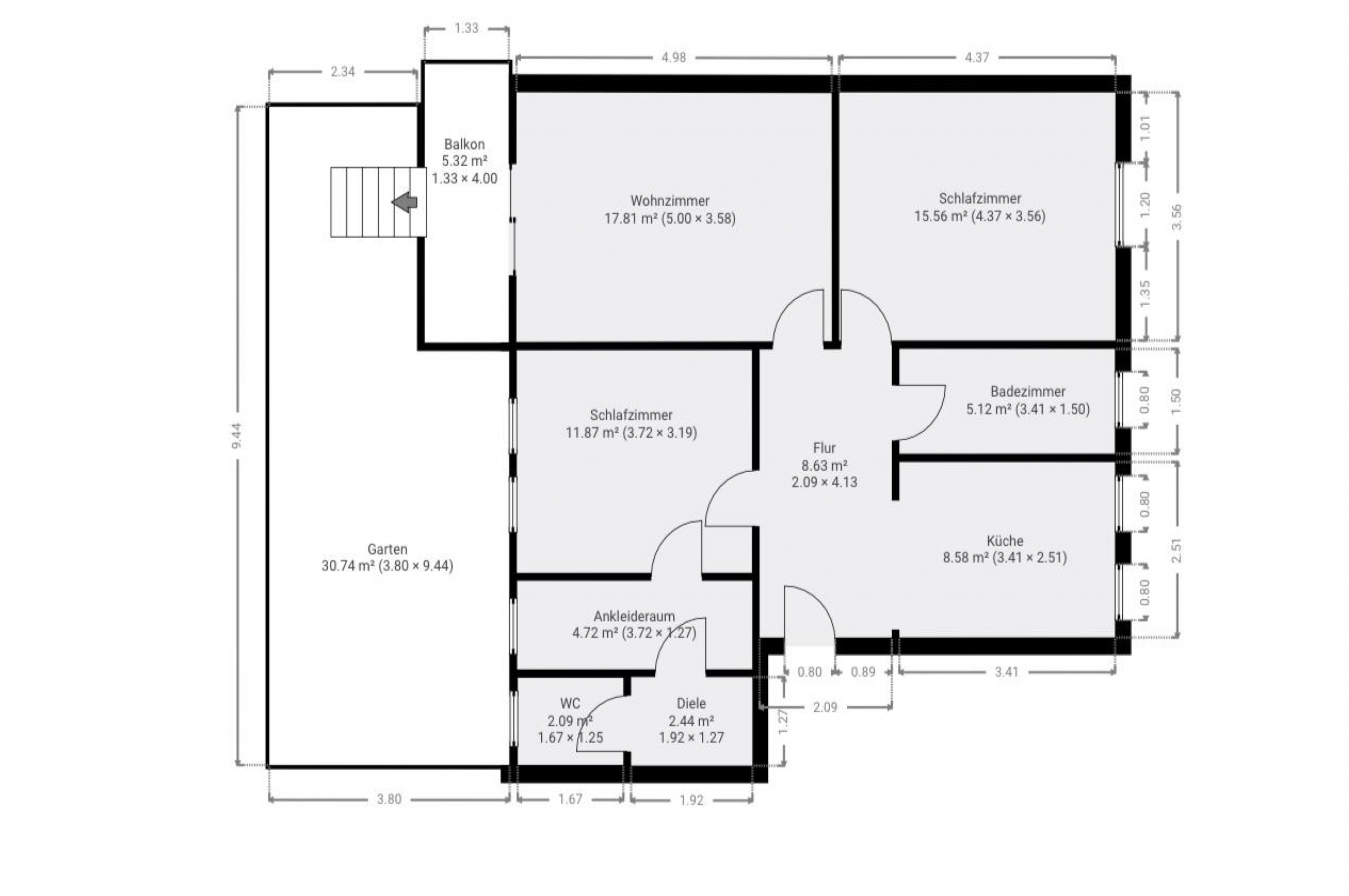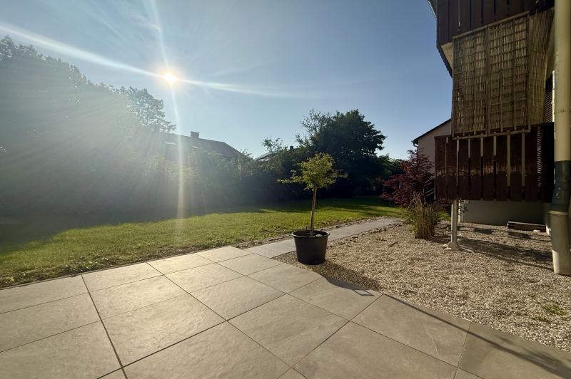 Helle Hochparterre-Wohnung mit Balkon, Garten und Stellplatz