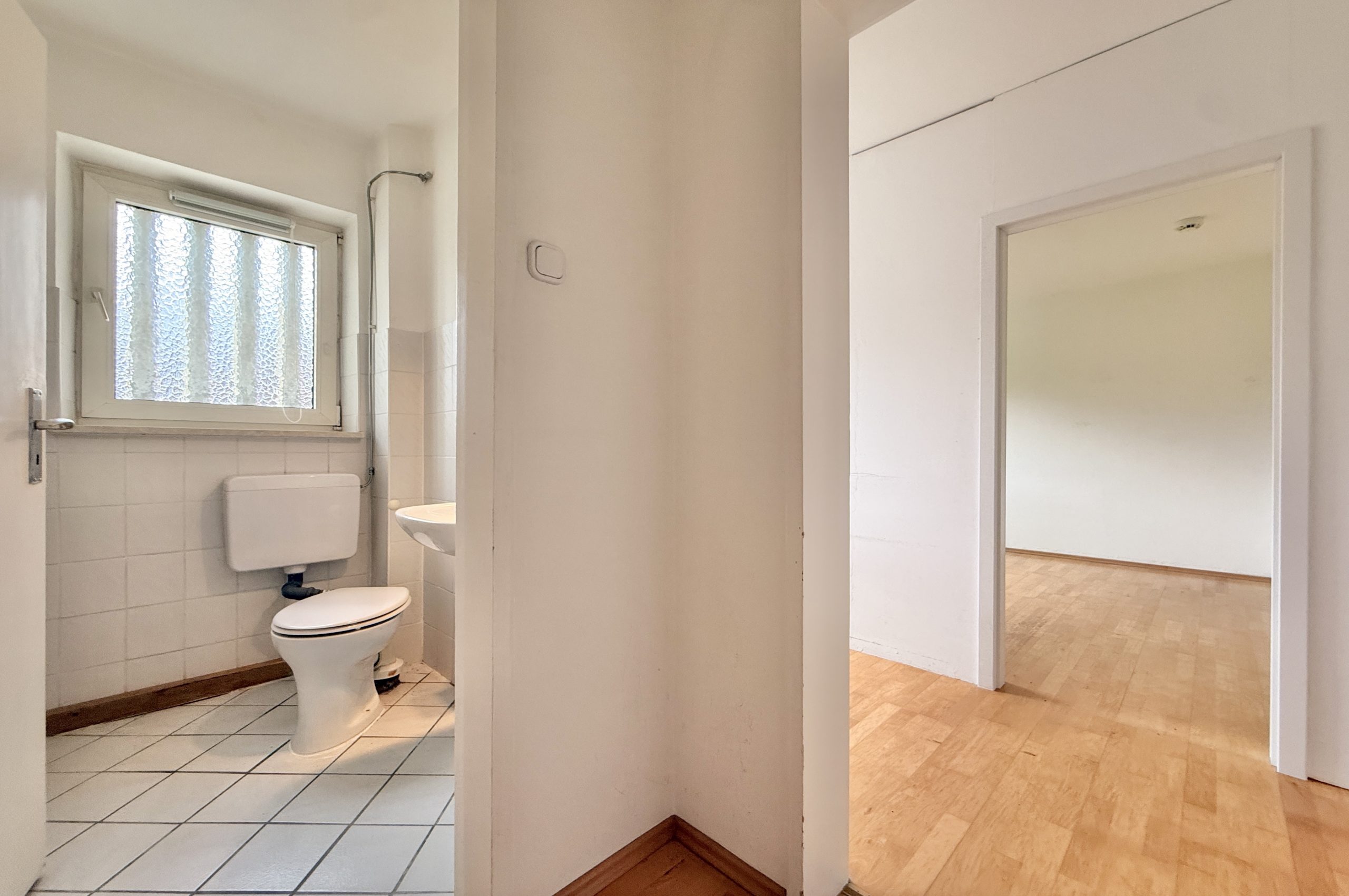 Diese gepflegte 3-Zimmer-Wohnung überzeugt durch ihre durchdachte Aufteilung, helle Räume und eine freundliche Wohnatmosphäre. Hochwertiges Holzparkett in den Wohnbereichen, ein modernes Bad sowie ein zusätzliches WC mit direktem Zugang aus einem der Zimmer bieten Komfort und Flexibilität.